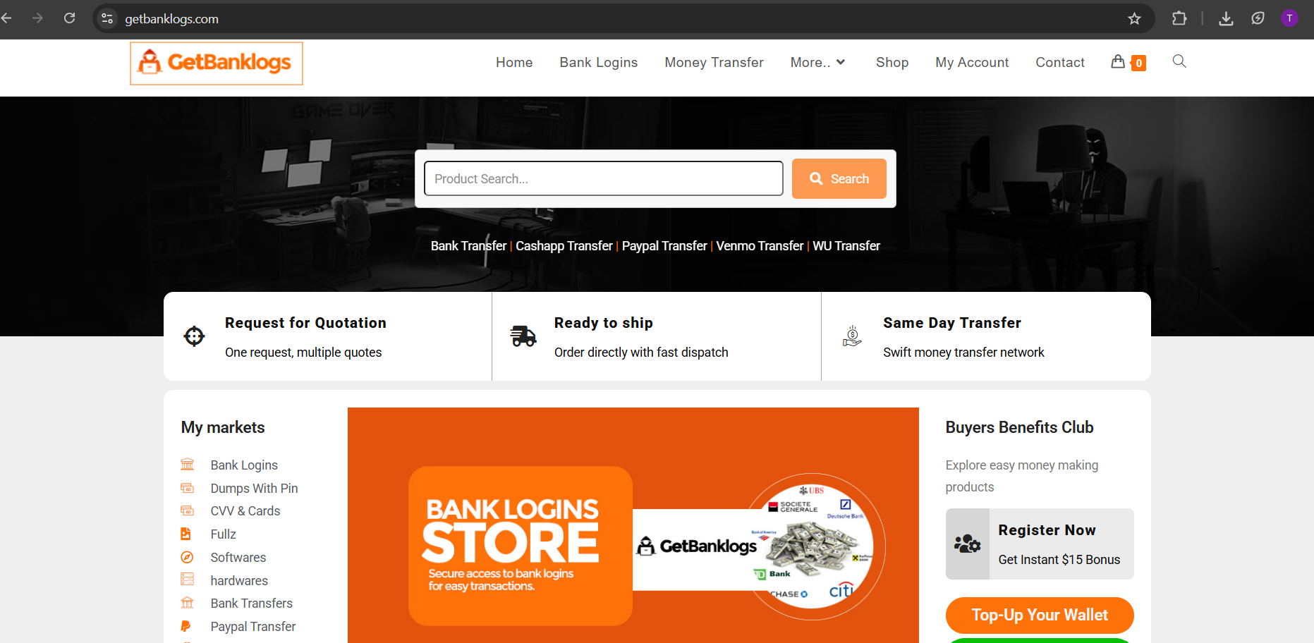 Known for high-balance worldwide dumps, money transfers, bank logs, and gift cards. Their CC sites and bins are often fresh. Strong reputation on several Russian-language forums. Visit Getbanklogs.com